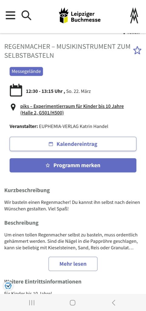 Wer Lust hat, kann mit seinen Kids auch am Sonntag, den 22.3.26 auf dem Jugendcampus UVERSE, der in diesem Jahr durch den Experimentierraum „piks“ ergänzt wird, an unserem Workshop teilnehmen. Wir basteln einen Regenmacher (aus dem neuen Buch „Konzert an der Regenbogenbrücke“) !