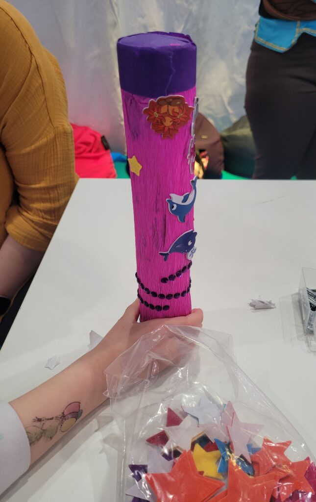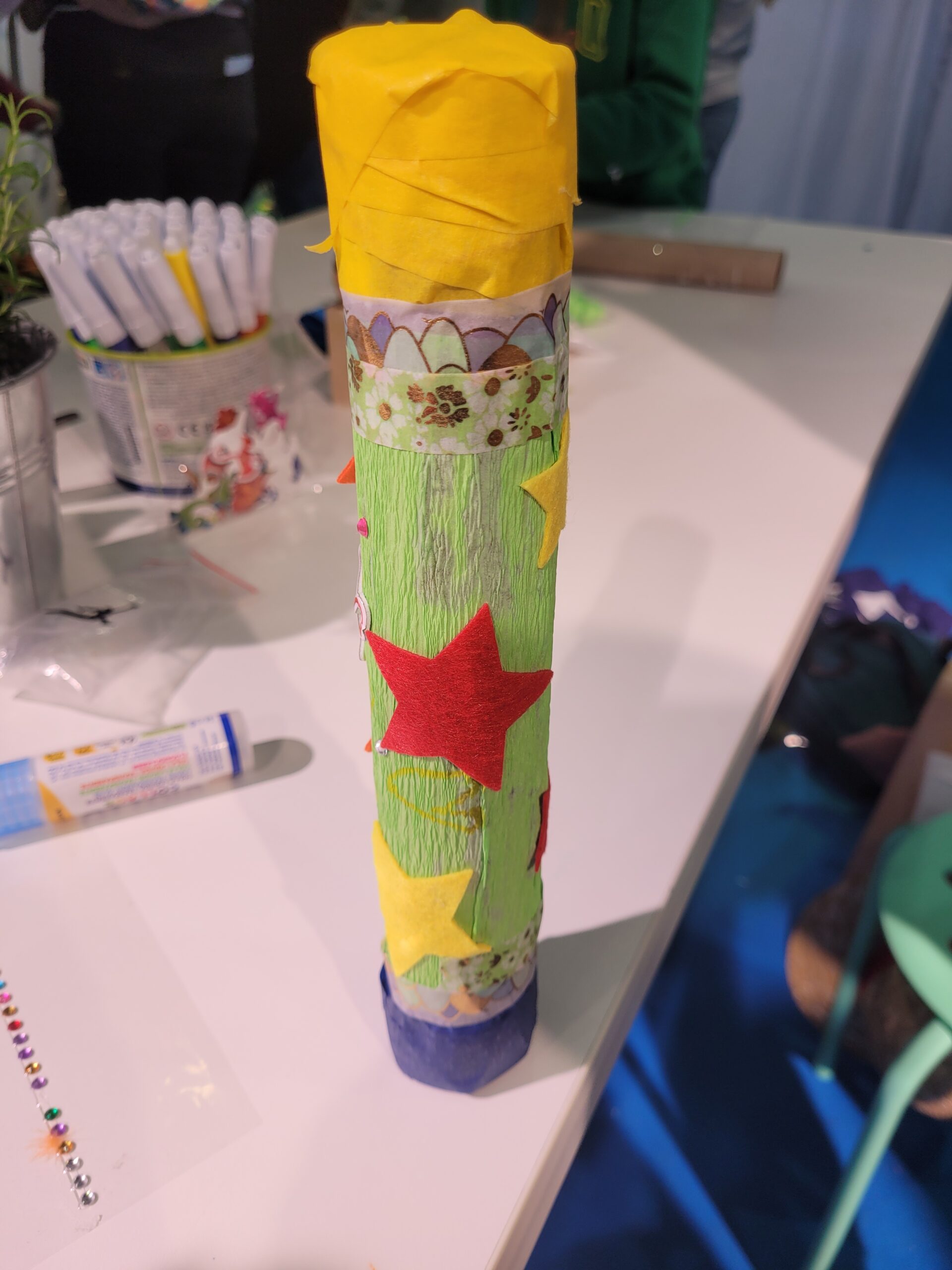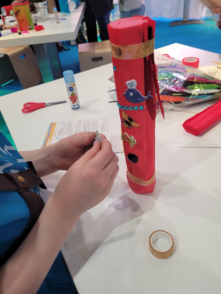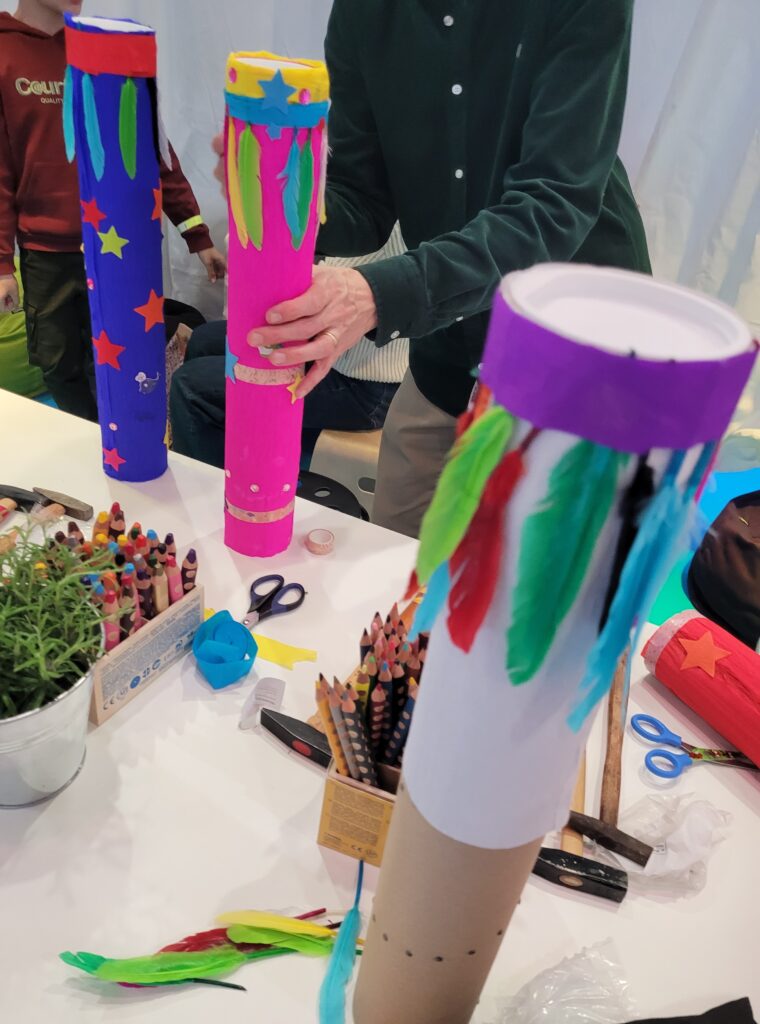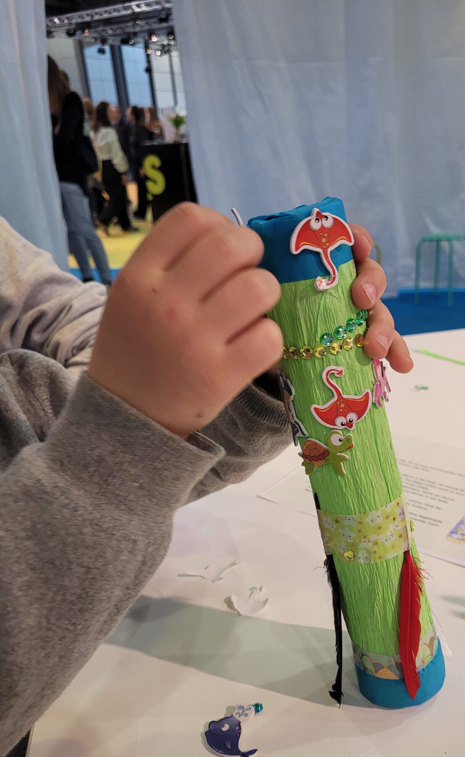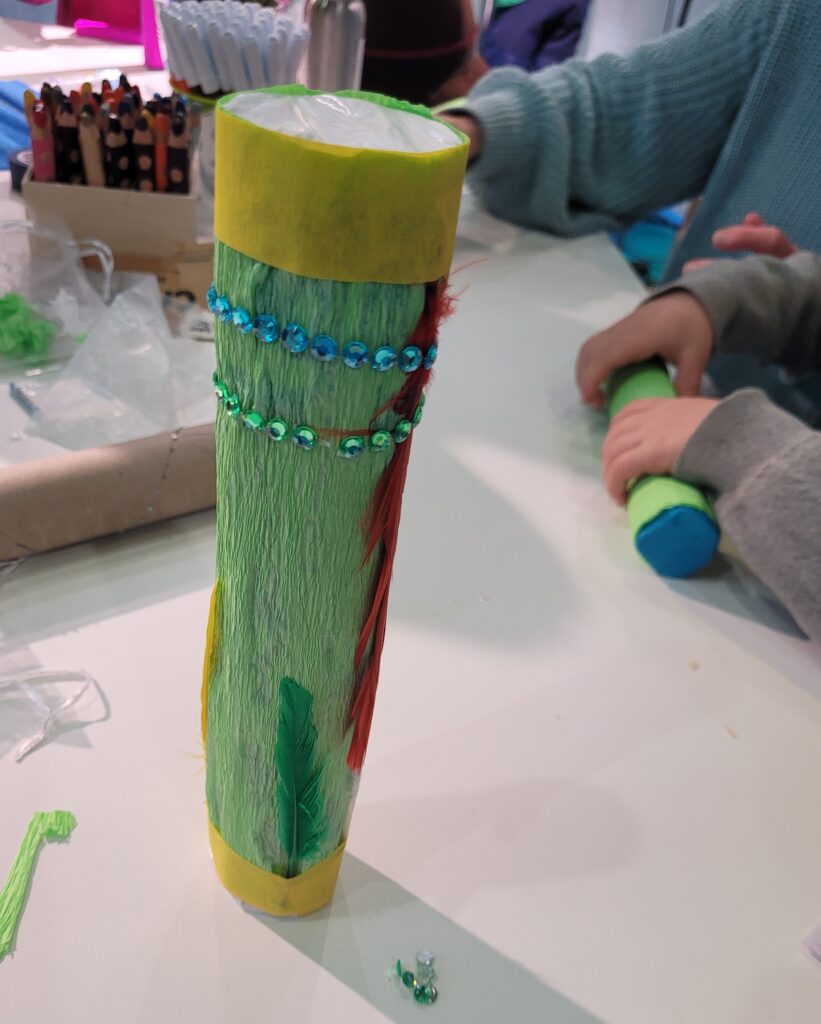 Ein großer Erfolg war unser Workshop, in dem die Kinder ihre eigenen Regenmacher basteln durften. Es wurde gehämmert, ausgeschnitten, geklebt und zum Schluss konnte jeder seinen individuell gestalteten Regenmacher mit nach Hause nehmen.